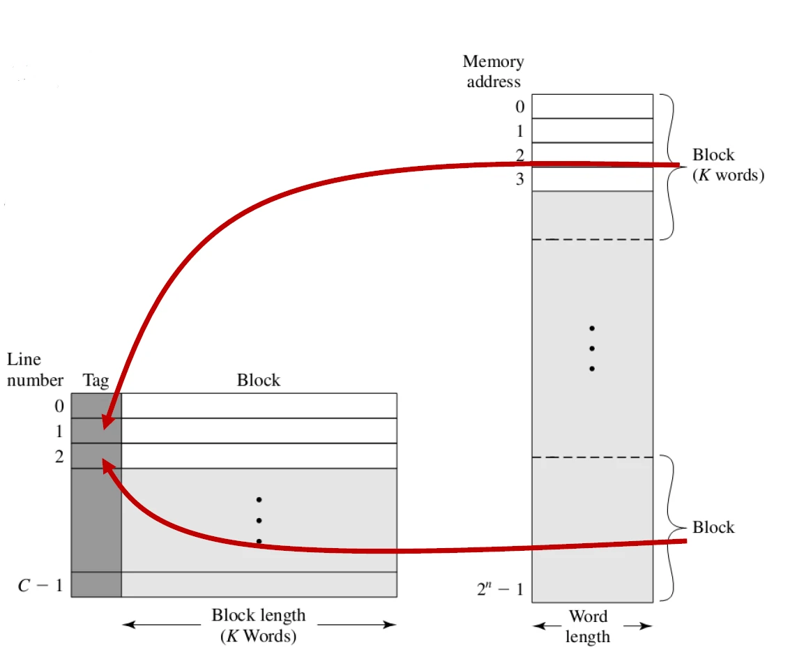 - 剩余 $s$ 位标识了主存 $2^s$ 个块中的一个.