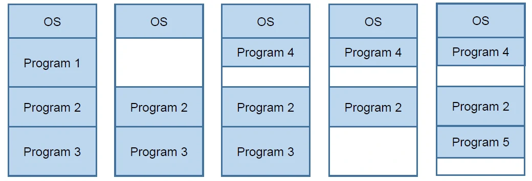 内存管理: 在多程序设计系统中, 内存的 “用户部分” 应该被进一步划分以适应多个程序, 这是由系统动态决定的.