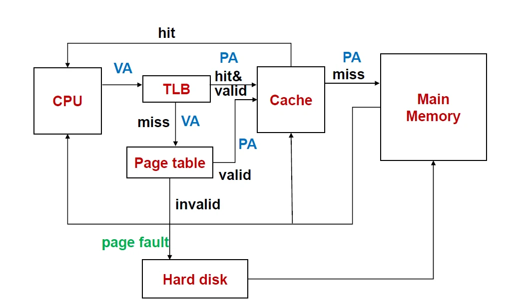- 虚拟地址 $<-$ 虚页号 + 页内地址 (偏移量)