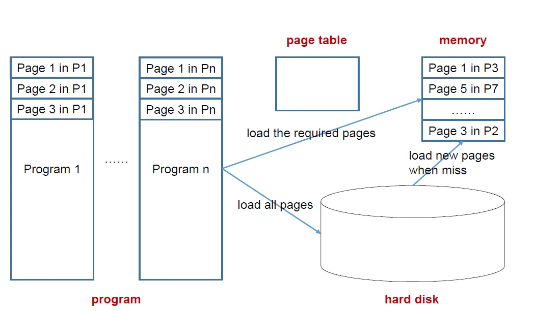 基本思想:请求分页,一个进程的页只有在需要的时候才被调入