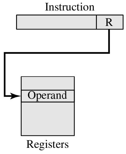 类似直接寻址, 地址字段指的时寄存器而不是一个主存地址.
