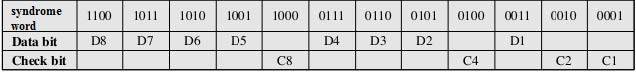 • 以 8 位的数据 $D = D_8…D_2D_1$为例子,校验码$C_1C_2C_3C_4$